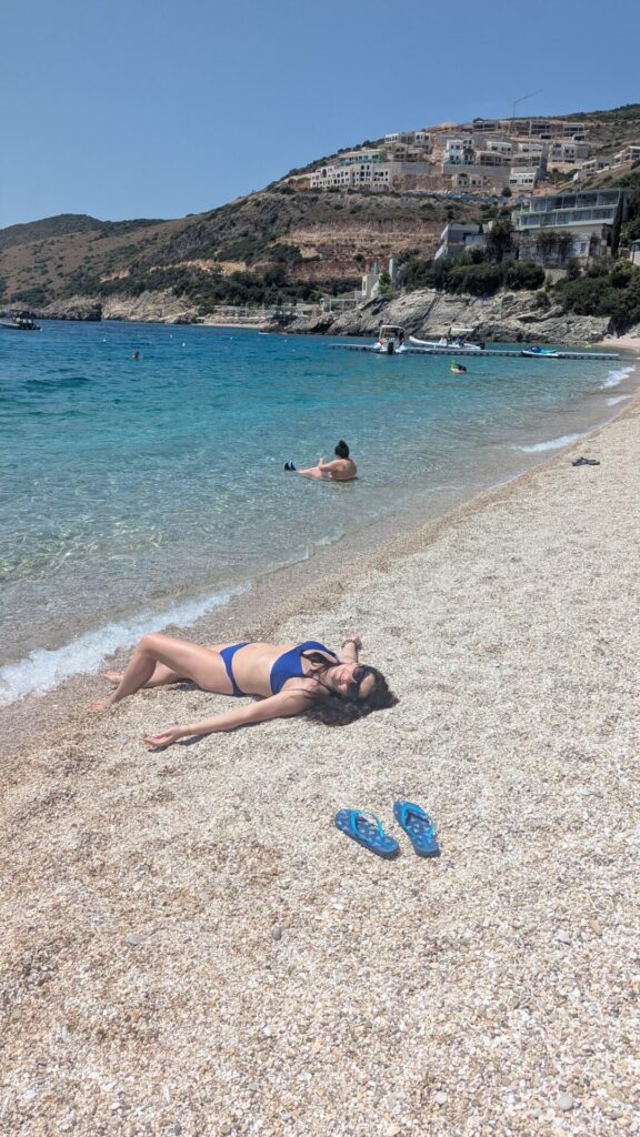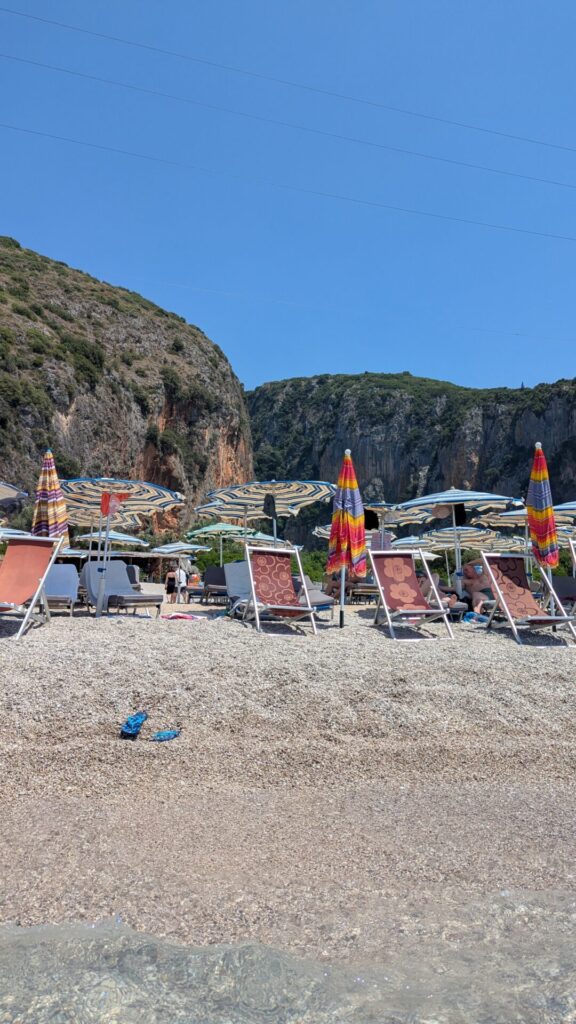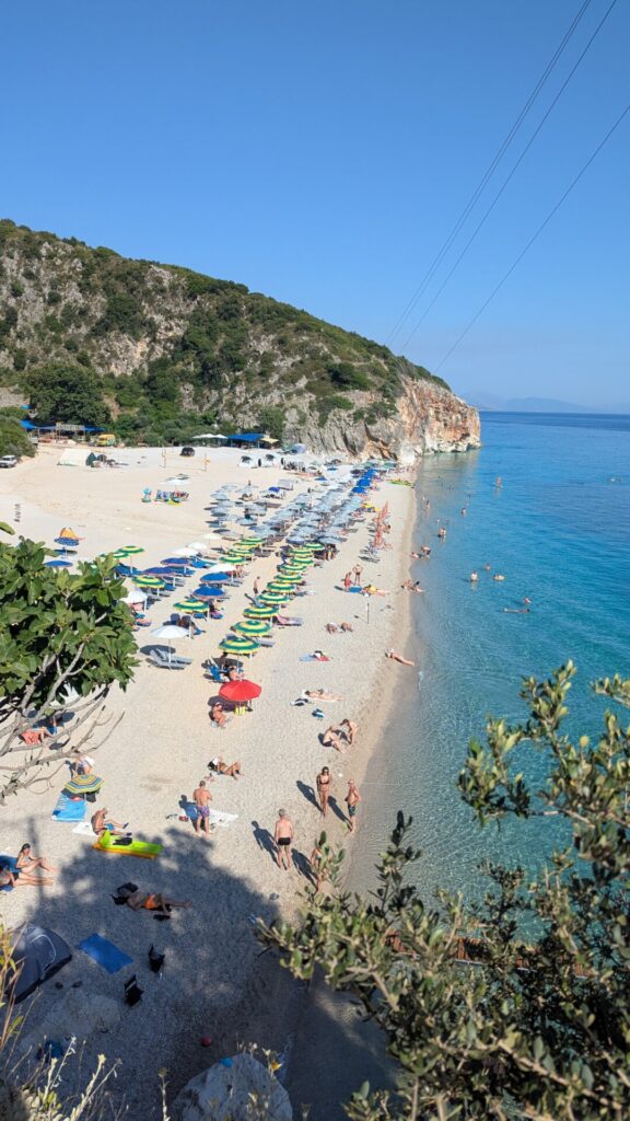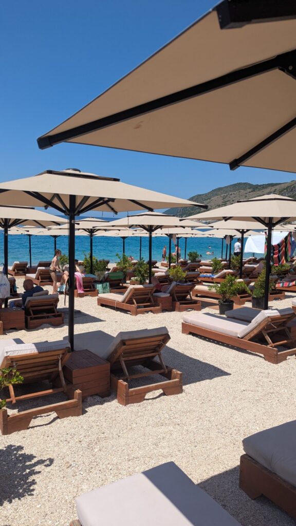 Ir ne veltui šiame pasakojime aprašau paplūdimius, nes jie skiriasi kaip diena ir naktis. Pavyzdžiui Vlore ir aplink esantys paplūdimiai nėra tokie švarūs, vietiniams vis dar įprasta į smėlį mesti stiklus, nuorūkas ir spjaudyti saulėgražas. Gultai pigesni, gali lengvai rasti už 5-10€ dienai, bet jie ir ne tokie patogūs kaip turistiniuose pliažuose. Tad jei keliaujate po Albaniją ir turite automobilį, tikrai rekomenduoju pavažiuoti kiek toliau į atokiau nuo miestų esančius paplūdymius.